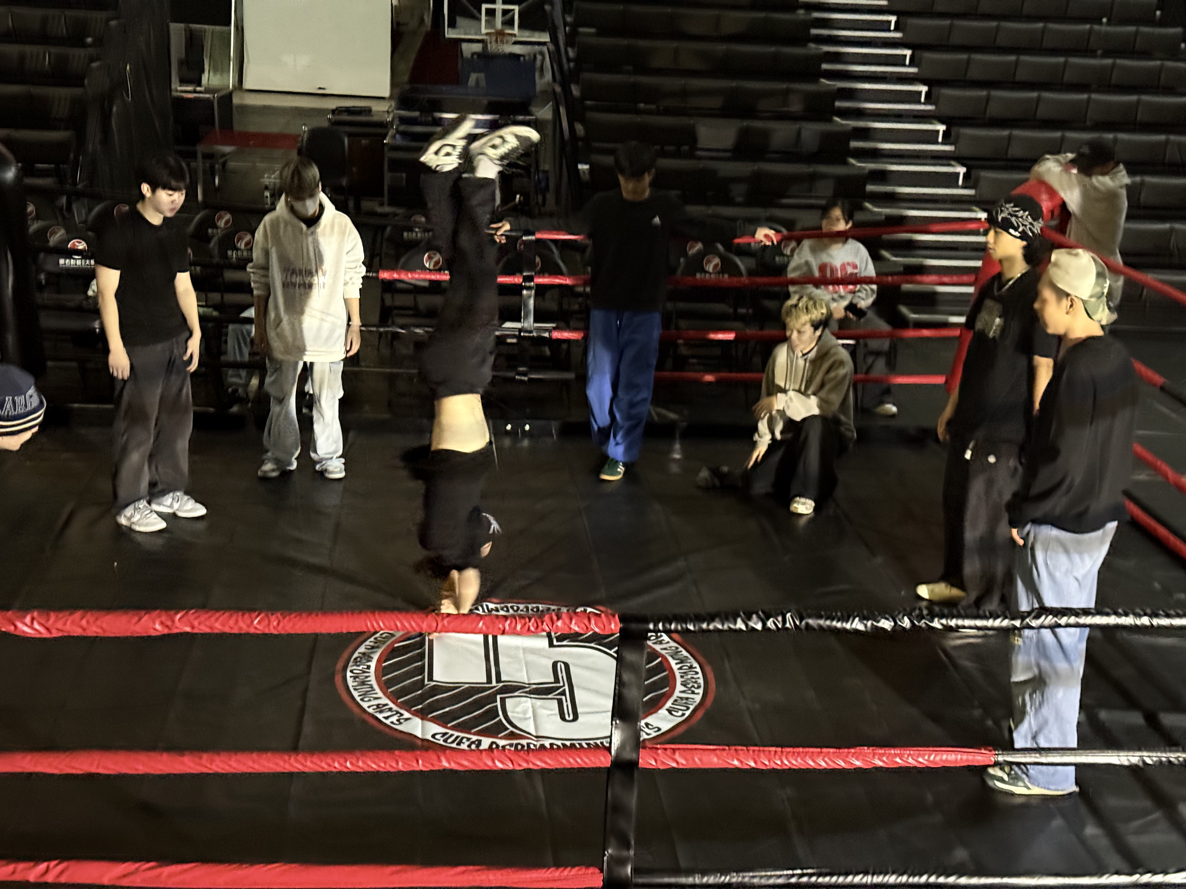 本活動將打造一座拳擊台舞台,讓學生在模擬競技氛圍的環境中進行舞蹈 Battle 與創意展演。課程初期由教師帶領學生進行舞台表演訓練,包括 舞台調度、情緒釋放、臨場應變 等主題;中期則安排分組創作,學生需依拳擊台的空間特色設計舞碼;最終以 「拳擊台舞台表演展演」 的形式呈現,觀眾近距離圍觀,讓學生在真實的高壓氛圍下累積演出經驗。